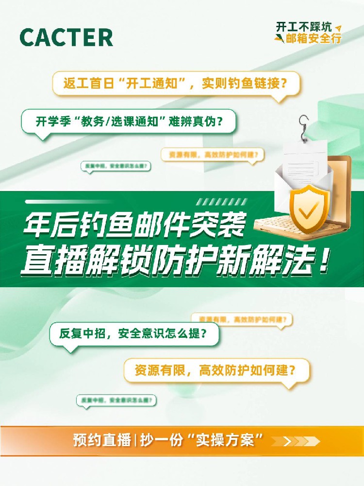 2024年2月27日15:00,某企业将举办线上直播,重点分享年后高发的钓鱼邮件攻击手法,帮助企业快速识别并防范风险。直播内容包括:1)深入剖析近期出现的典型钓鱼邮件特征与传播渠道,提供实战检测技巧;2)解读核心安全数据,分享配置安全设备与预算编制的实用经验;3)对比校园与企业两类典型场景,提出差异化的防护策略与落地建议。与此同时,主办方准备了价值千元的礼品包及《高发钓鱼邮件案例》合集,供参会者下载获取更多实战资料。活动旨在提升企业信息安全防护能力,促进新年度安全开工顺利进行,供企业管理者与技术人员参考学习。直播将于腾讯会议平台进行,支持手机、PC多端观看,并安排互动问答环节,现场提供实用案例分享,帮助企业管理者与技术人员深入理解防护要点。
