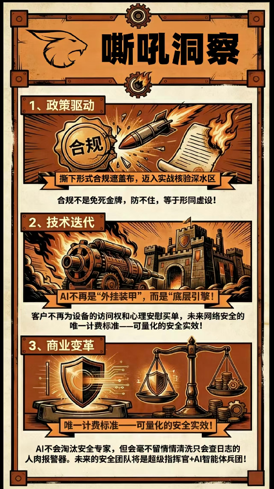 2024年,中国网络安全市场规模降至952.4亿元,同比下降4.6%,传统硬件萎缩至210亿元。与此同时,生成式AI带来的安全威胁激增:深度伪造欺诈案件增长3000%,AI生成钓鱼邮件提升1000%。监管从“形式合规”转向“实效防护”,新版等保实行重大风险一票否决制,并要求高危漏洞快速修复和常态化红蓝对抗。随着宏观经济下行,企业CISO更强调安全投资的ROI,推动安全从一次性采购向持续订阅的效果付费转型。2025年,AI原生防御平台实现自动化关联和快速响应,误报率下降至8%,处置时间缩至3.2分钟,提升防御效率7.5倍。此轮变革的底层驱动力是攻防速度的降维、监管细化和预算精细化,迫使企业摆脱硬件依赖,聚焦平台化、服务化和AI驱动的实战化防护,开启网络安全的新增长赛道。