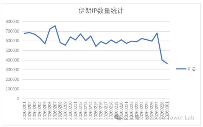 2026年2月28日,以色列与美国对伊朗发动"咆哮的狮子"和"史诗怒火"行动,伊朗随即以导弹、无人机报复并封锁霍尔木兹海峡,冲突升为区域战争。DayDayMap监测显示,伊朗战前日均存活IP约61.4万,战时骤降至11.4万,存活率跌至18.6%,表明全国性断网;以色列则从13.3万降至9.8万,保持73.7%存活率,波动小。端口分布上,伊朗战时保留VPN及工控端口,以维持关键机构通信;以色列端口结构基本不变。革命卫队等核心IP段存活率仅7.3%,反映其成为物理打击与网络攻击协同的重点目标。伊朗各省份下降最显著的是马克齐、德黑兰及胡齐斯坦,与核设施、指挥中心被袭相吻合。数据揭示,战争同时伴随大规模网络攻击,削弱伊朗指挥控制与舆论能力,而伊朗采取主动断网与选择性保留关键服务的策略,暴露了内部网络防御的重大短板。